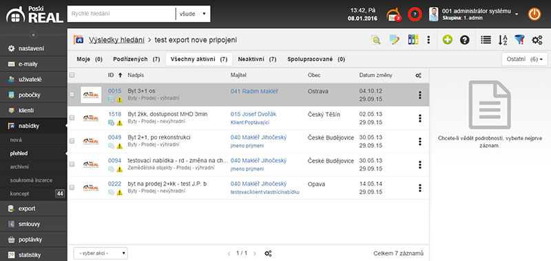 - Vyfiltrovat exportní server (např. ano - Sreality.cz)
