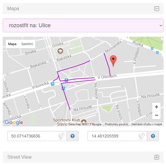 - vložte tento odkaz na street view mapu do připraveného pole výše