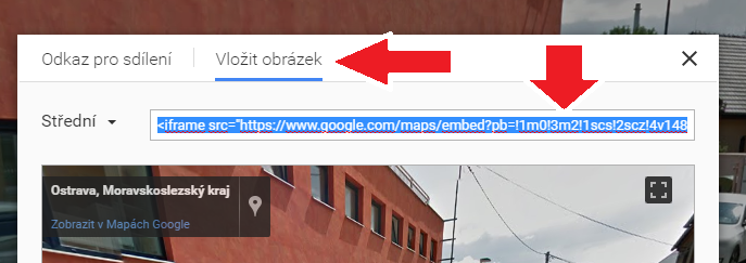 - Na maps.google.cz si najděte streetview, které chcete vložit do systému.